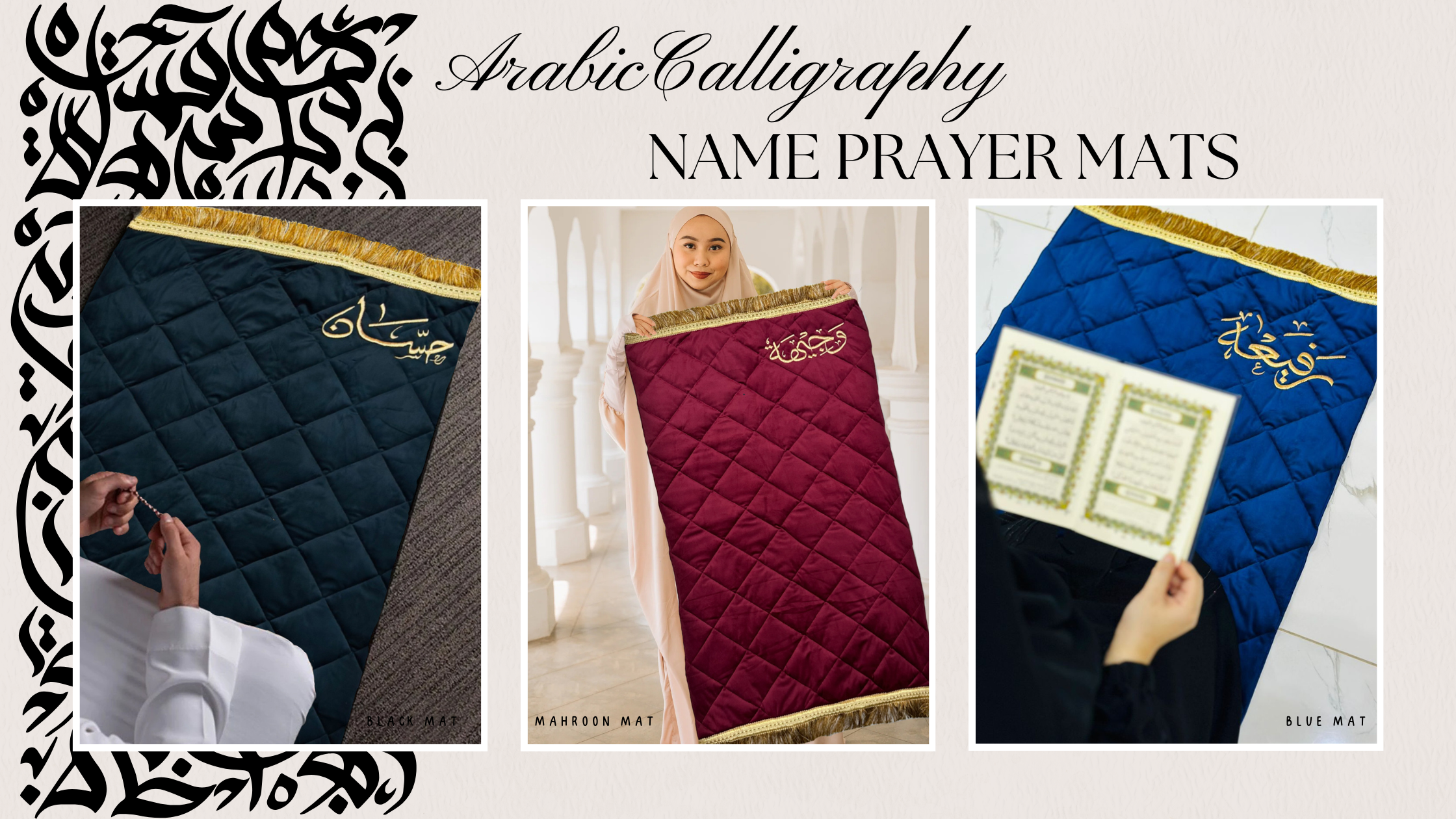 Customized prayer mats with embroidered names and a free matching tasbeeh offer a perfect combination of devotion and elegance.